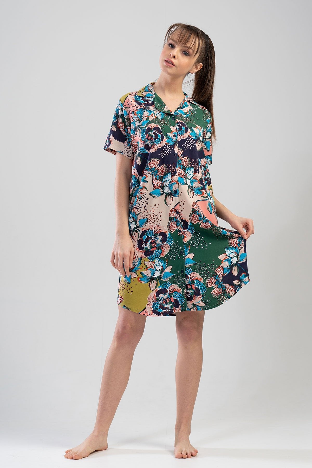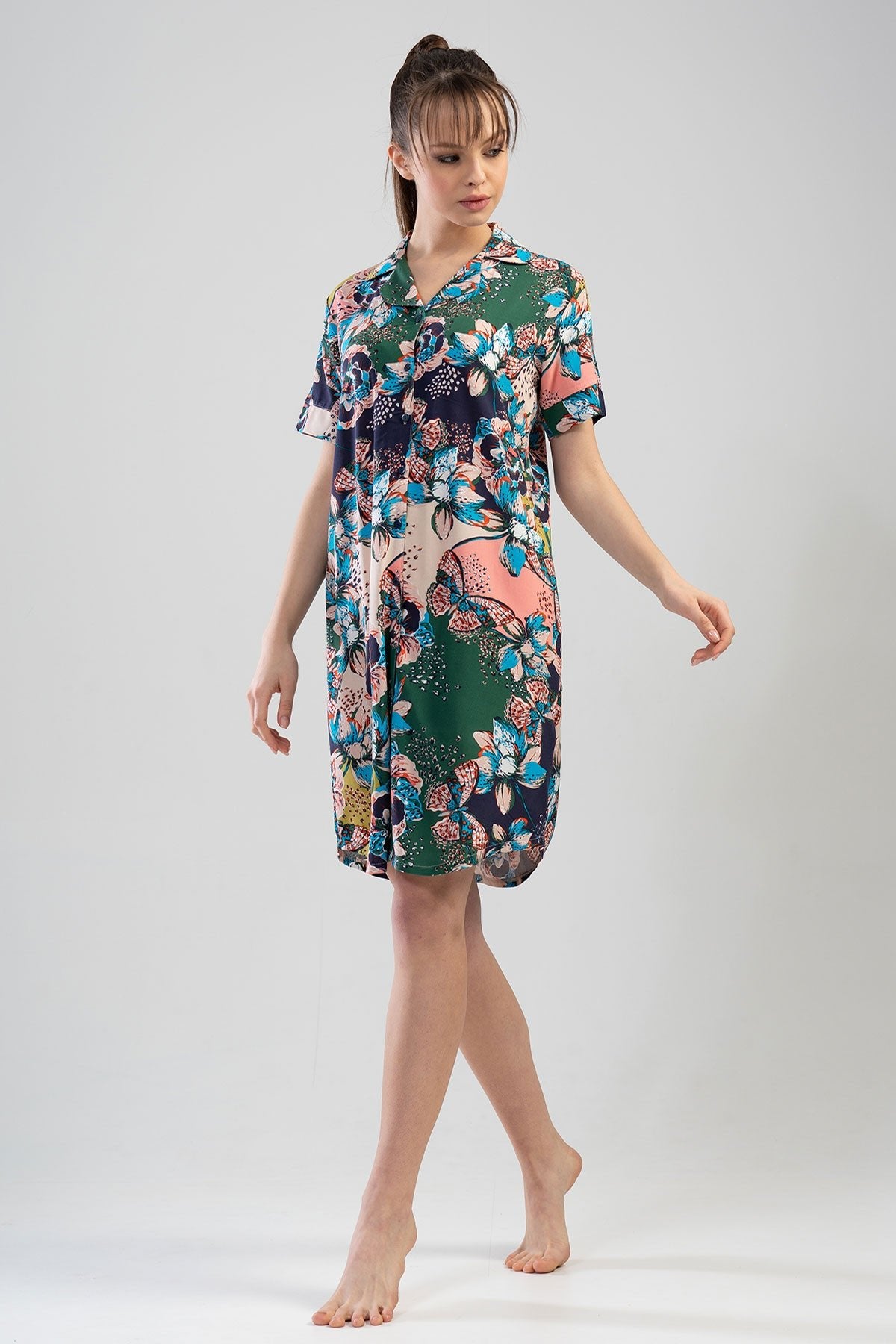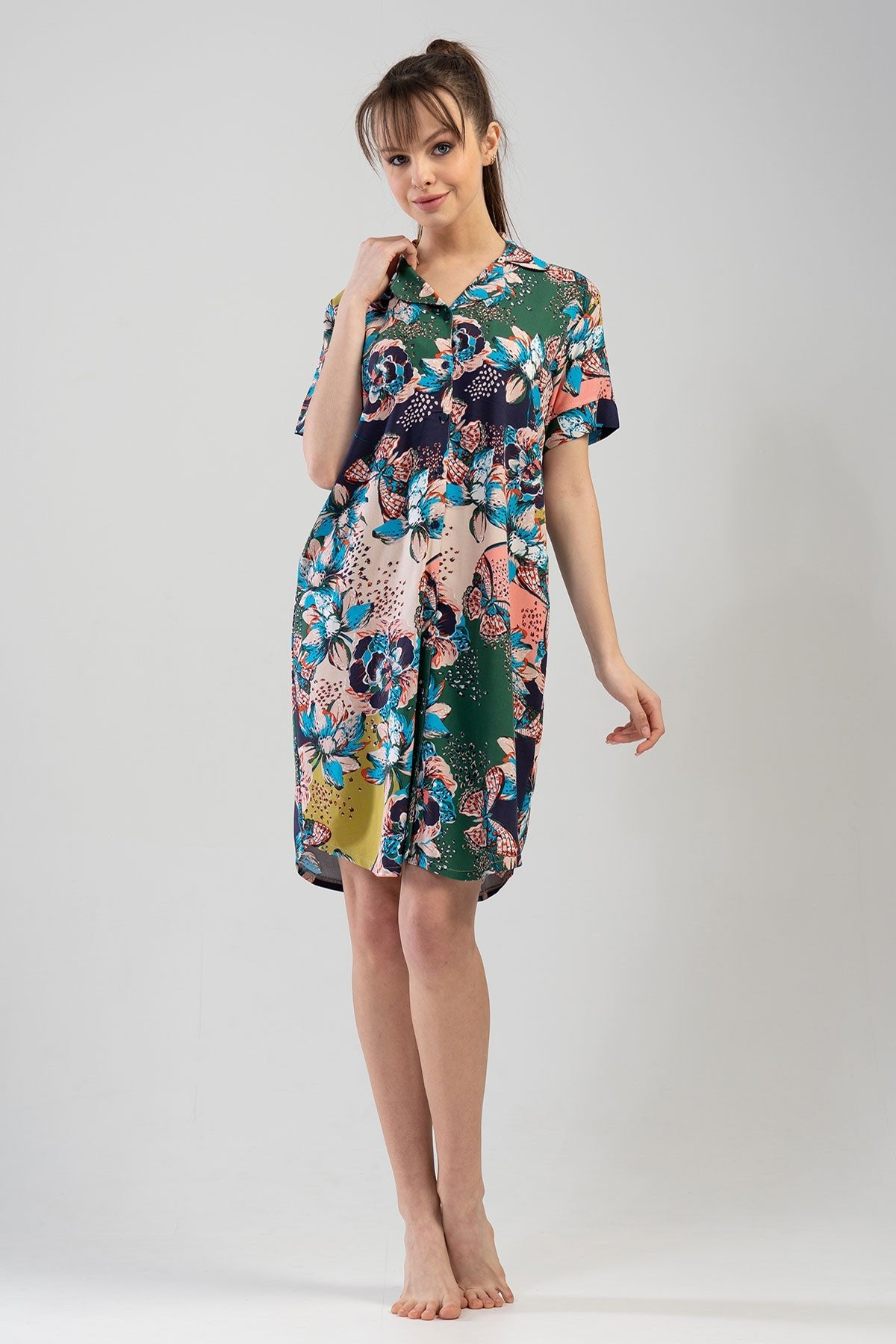 BAYAN VISCON GOMLEK YAKALI TAMAMI DUGMELI KISA KOL TUNIK