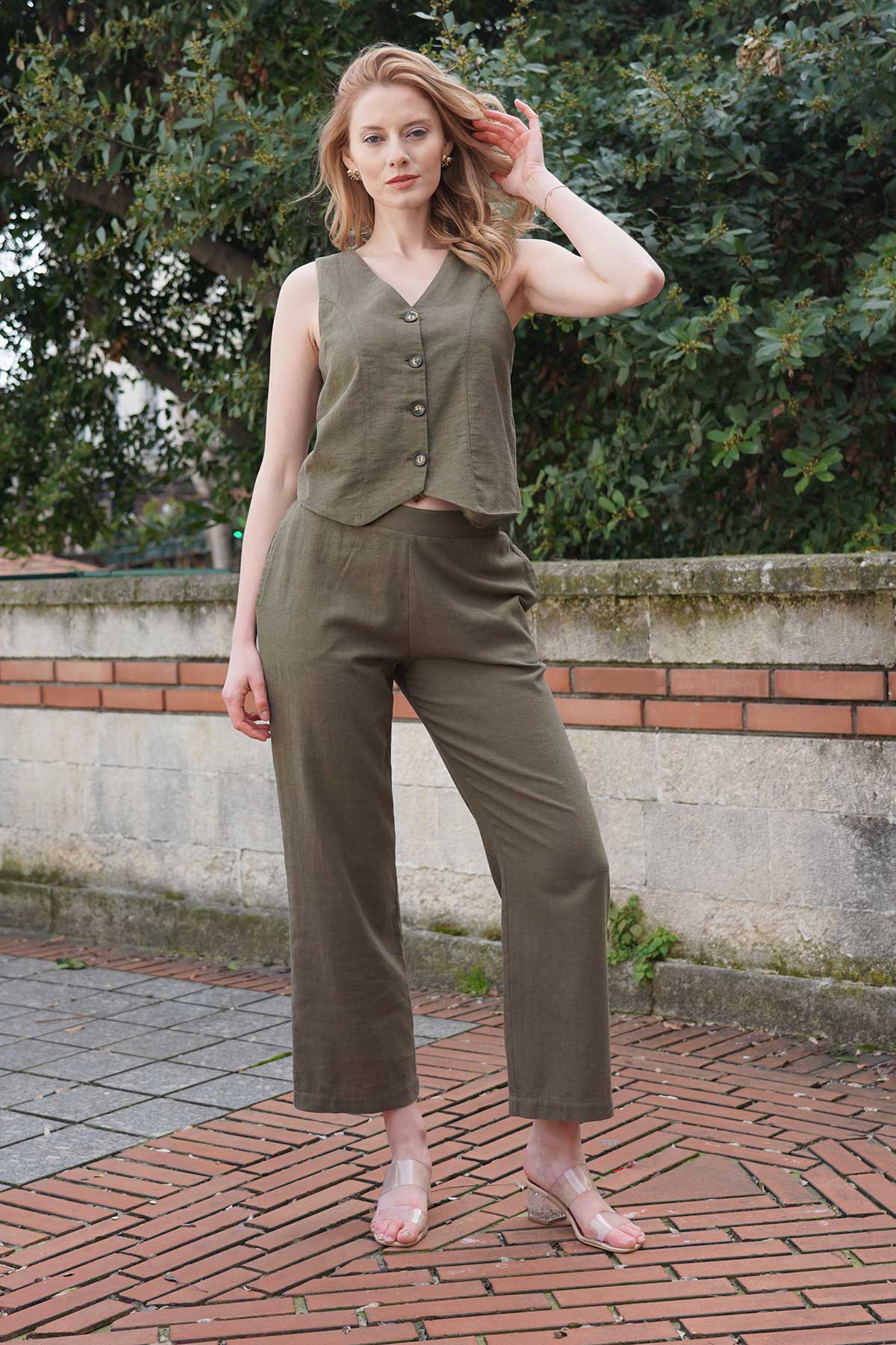 KADIN PAMUK YELEK CEPLI PANTOLON TAKIM
