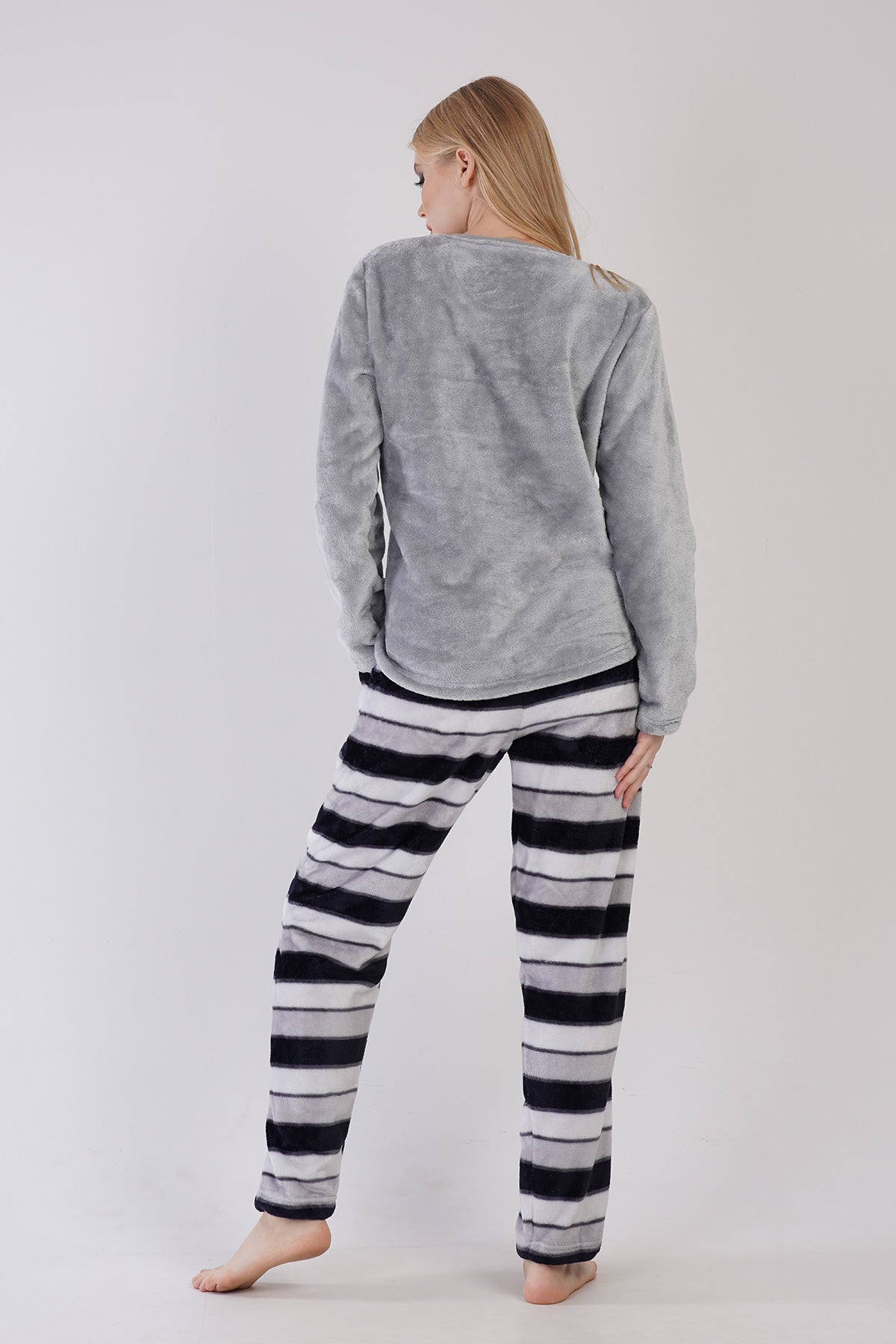 KADIN SOFT O YAKA UZUN KOL ETEGI OVAL CEPLI PIJAMA TAKIM