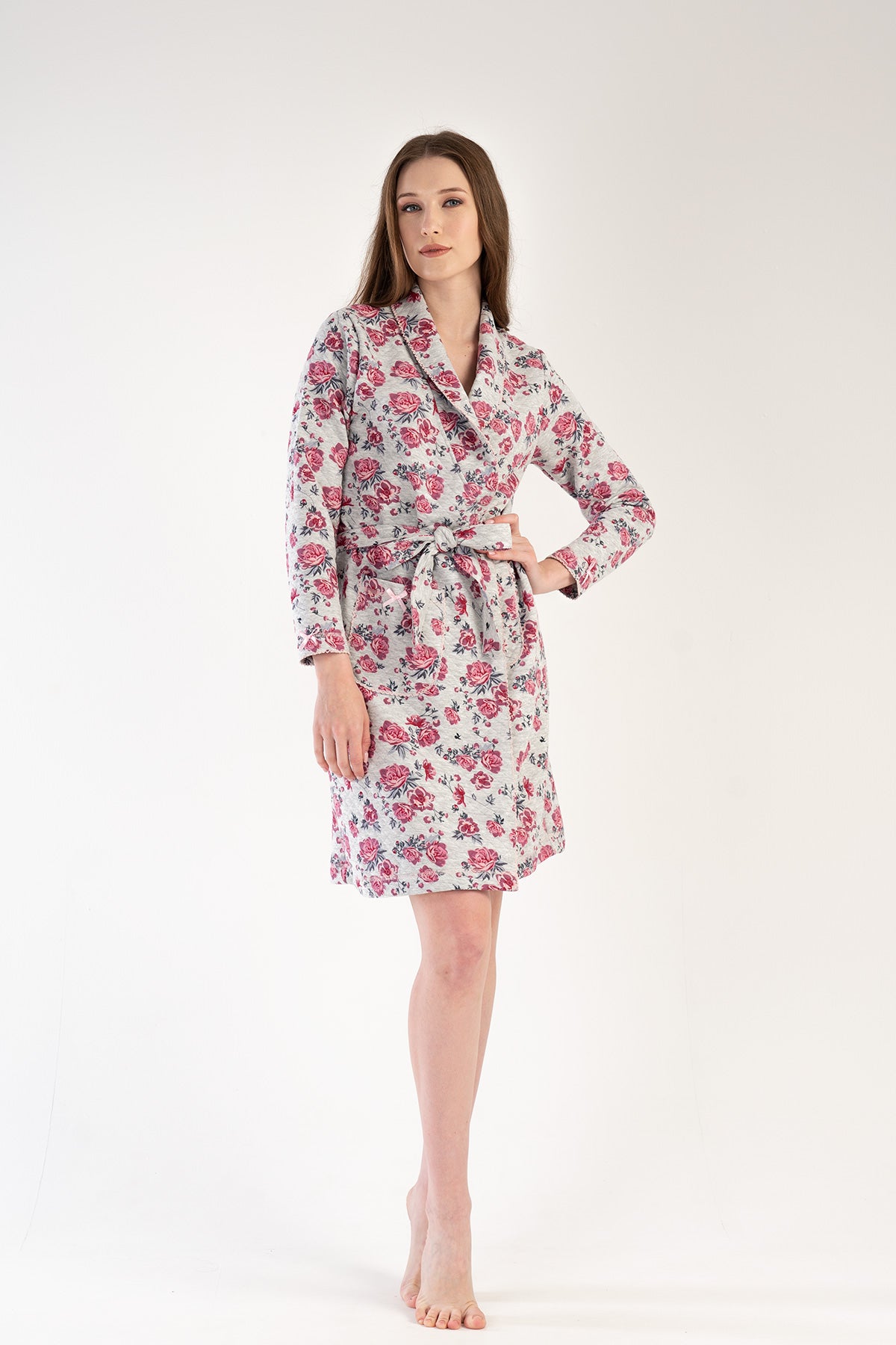 KADIN KAPITONE SAL YAKA UZUN KOL KISA SABAHLIK