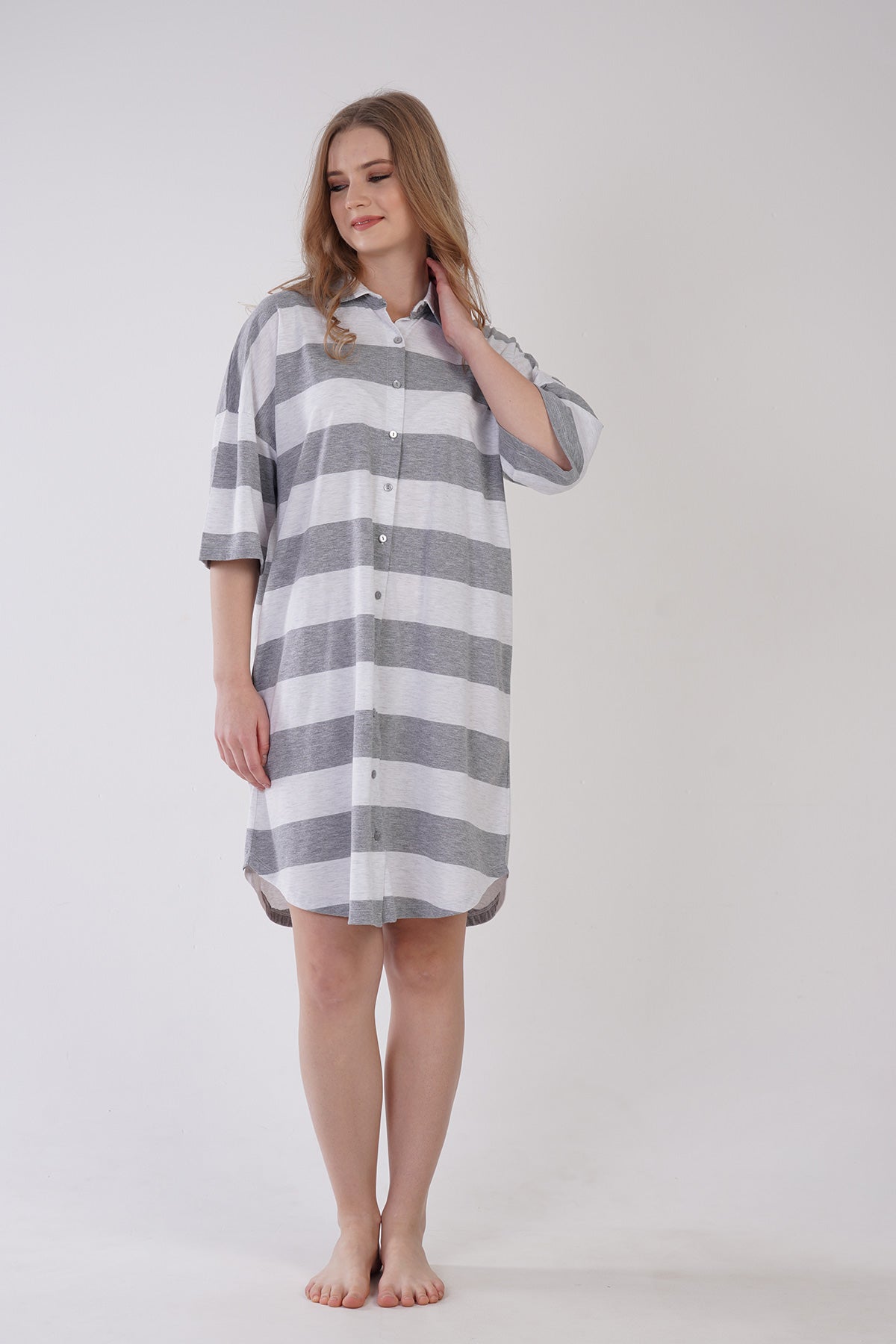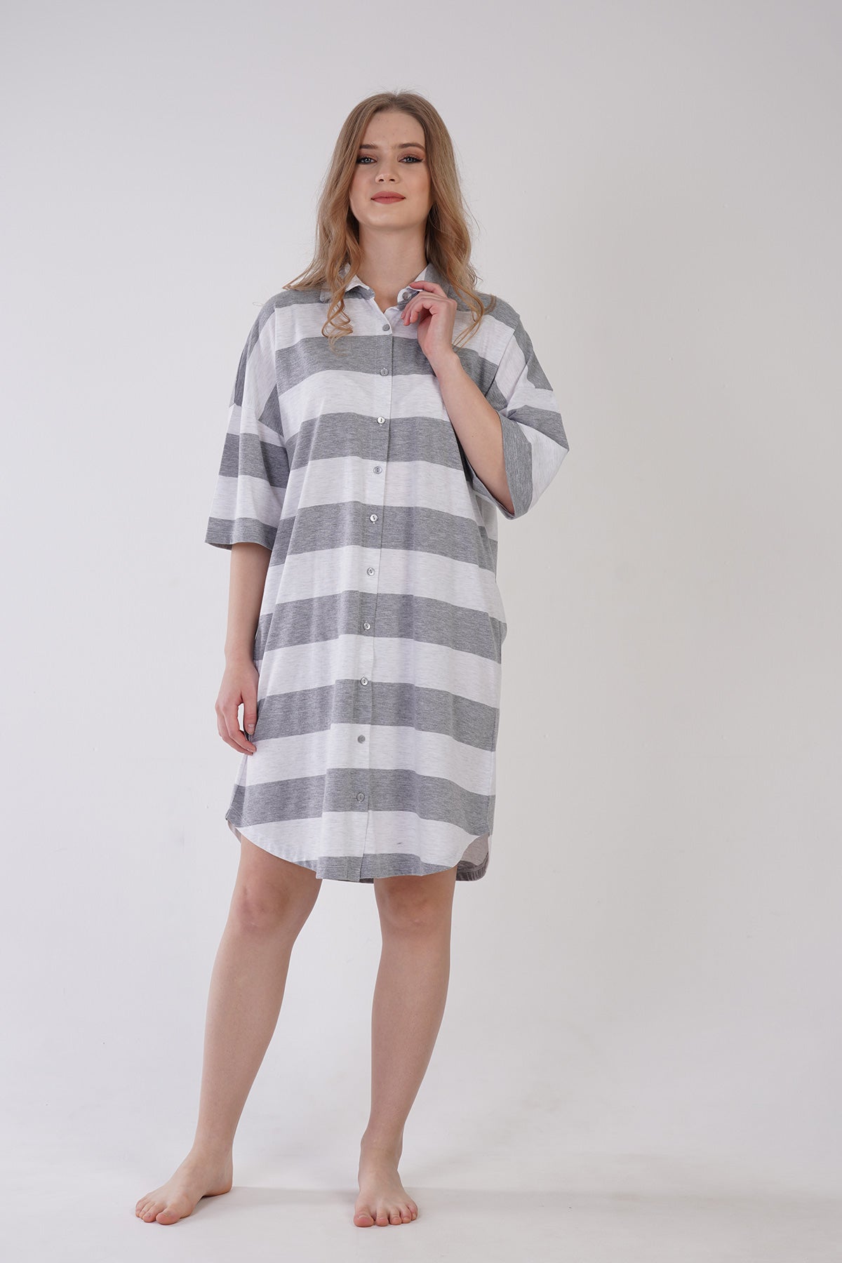 • KADIN SUPREM KISA KOL GOMLEK TUNIK 309018 - Vienetta1.GrupGRAY MELANGE