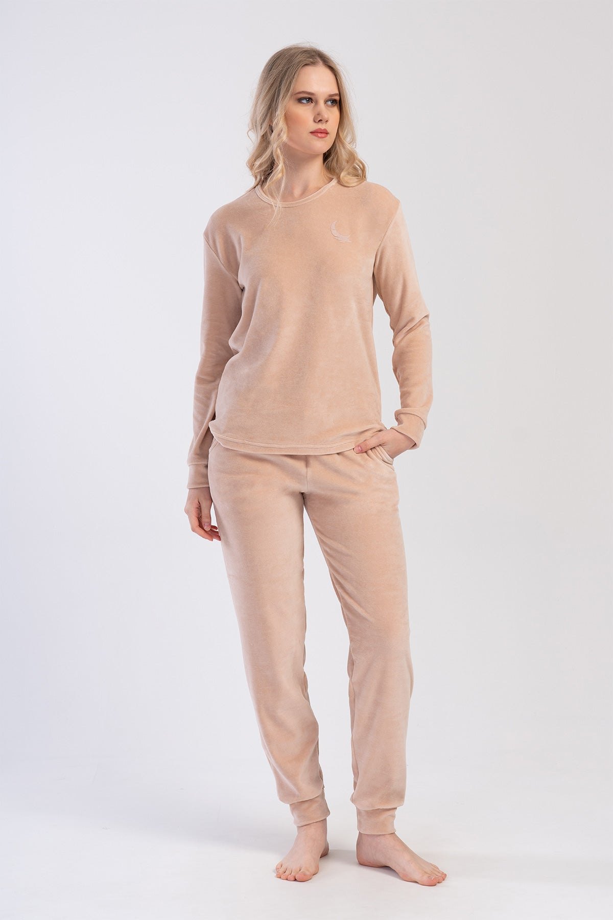 • KADIN KADIFE UZUN KOL PIJAMA TAKIM 403094 - Vienetta1.GrupBEJ