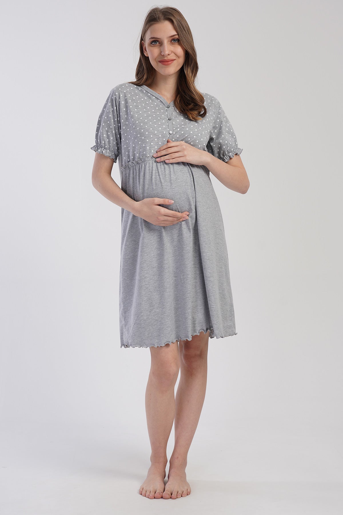 KADIN P.SUPREM DUGMELI KISA KOLU BELI LASTIKLI BIBILALI HAMILE TUNIK